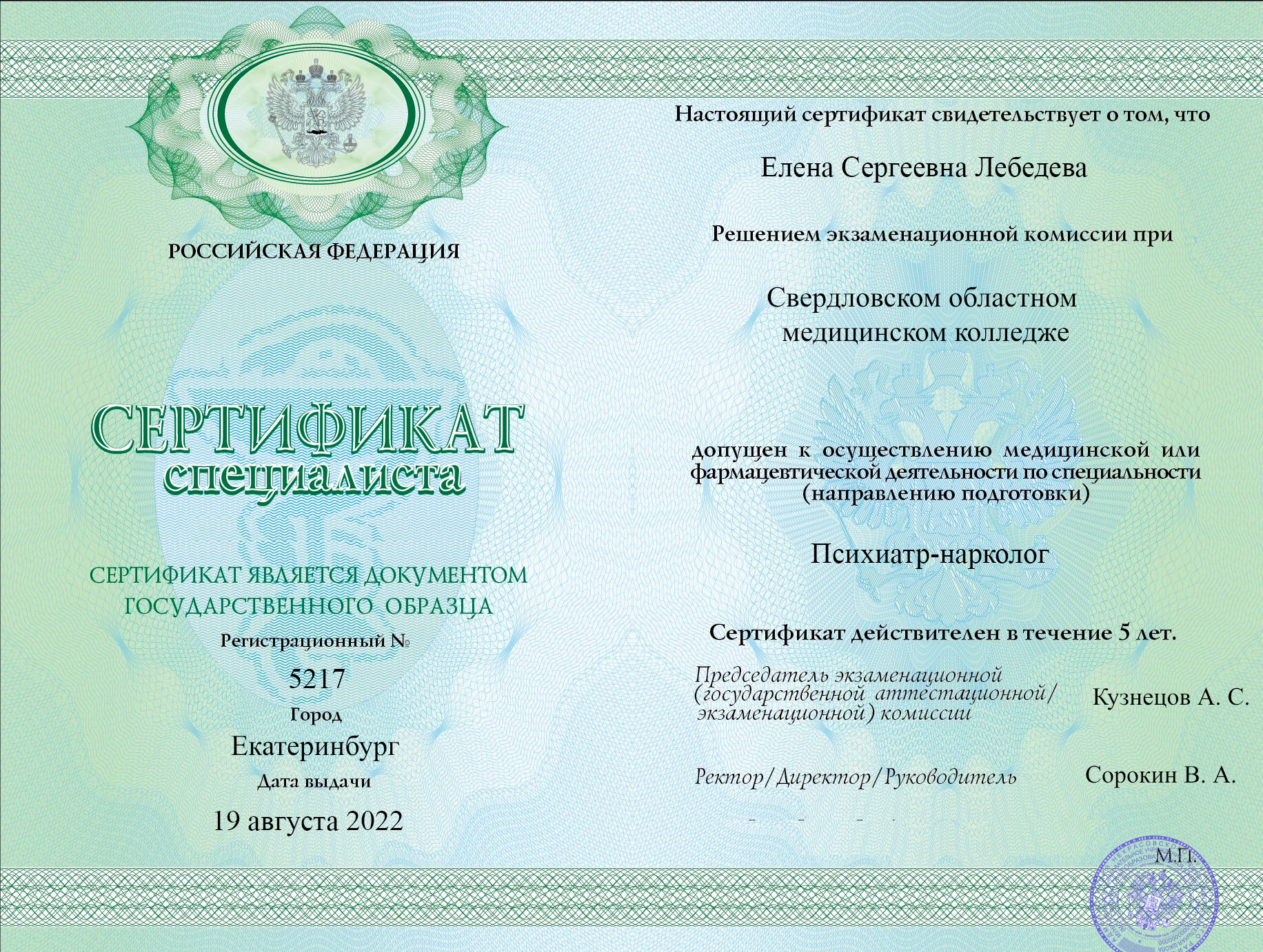 Елена Сергеевна Лебедева врач нарколог клиники доктора Стукаловой в Хороле